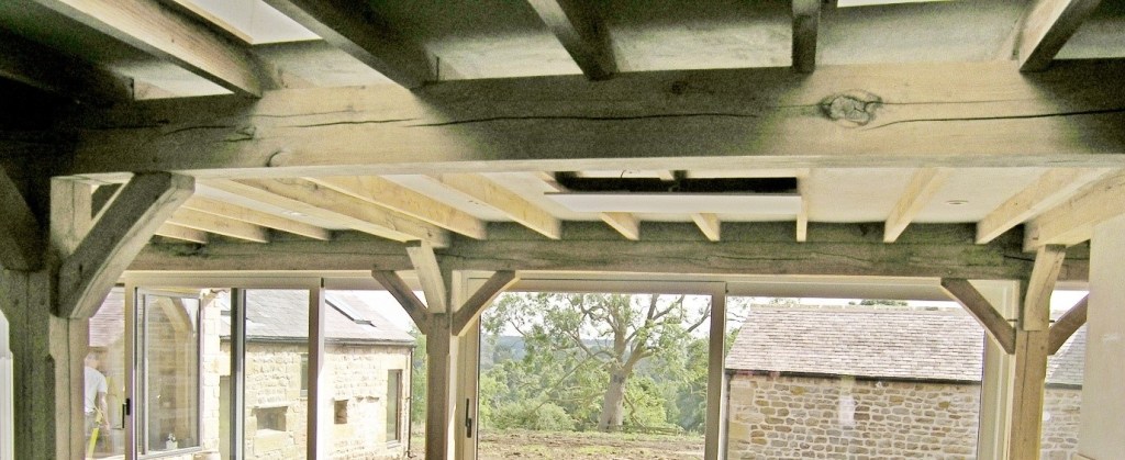 The project involved GreenBeams going into the Swinton Estate woods with the woodsmen to select 21 beech and sycamore 35 year-old tree thinnings for the main structural elements. Diseased trees with Sudden Larch Death were used for joists and stud walls. The timber was therefore saved from the estate’s biomas boilers and sent to saw mills. The structure has been assessed as having a carbon footprint of negative 9.7tonnes CO2e.